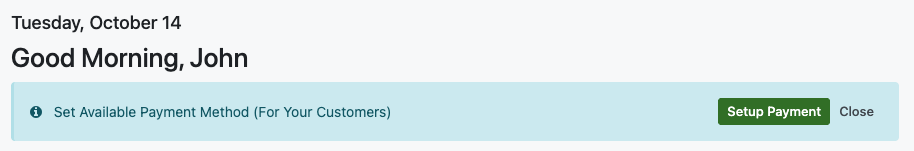 From the dashboard, click Setup Payment and you will see all of our available payment method.