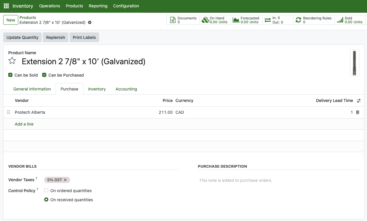 Inside Purchase tab, its recommended to input the vendor name where this product are purchased from.