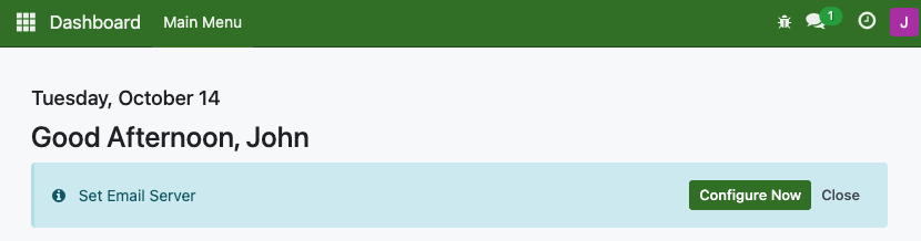 From the main dashboard, you’ll see a blue banner prompting you to set up your company. Click Configure Now to begin.