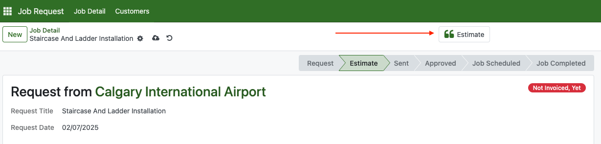 Job Requests is where all customer requests are collected. Here, you can add the schedule and job details based on the customer’s requirements.