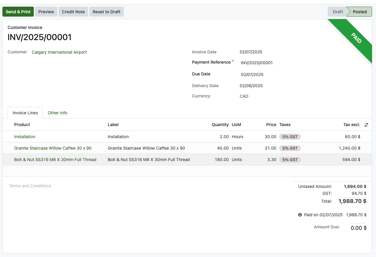Once the invoice is paid, the ribbon "Paid" will appear.