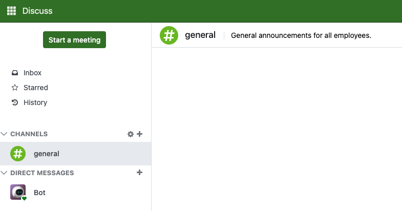 On the left panel, you can create channels and invite people to collaborate, or send direct messages to anyone on the platform. Chats will appear in the main panel on the middle-right side of the screen.