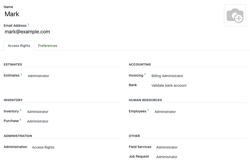 From the selected user view, scroll down to see all the available roles that can be assigned to the user. The Administrator role has the highest level of access and allows the user to manage all records.