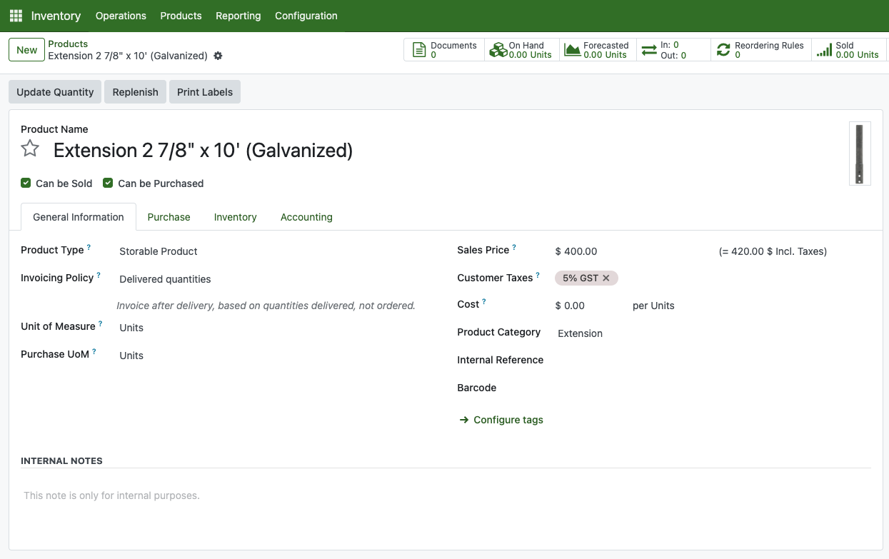 Acquiring stock can be done by purchasing the product or making a physical inventory adjustment. Purchasing means acquiring quantity and, doing physical inventory adjustment meant counting stock that physically available. This step usually do annually to recalculate accuracy between your real-life quantity and the system.