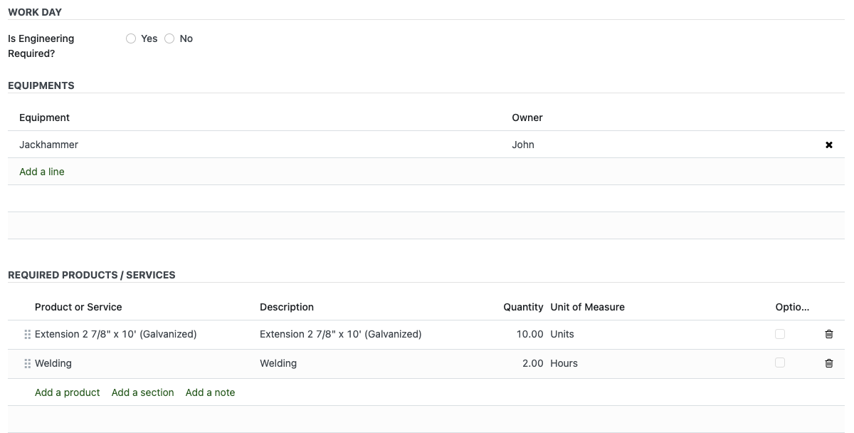Scroll down to the bottom and you will see Work Day Section and Required Product/Services.