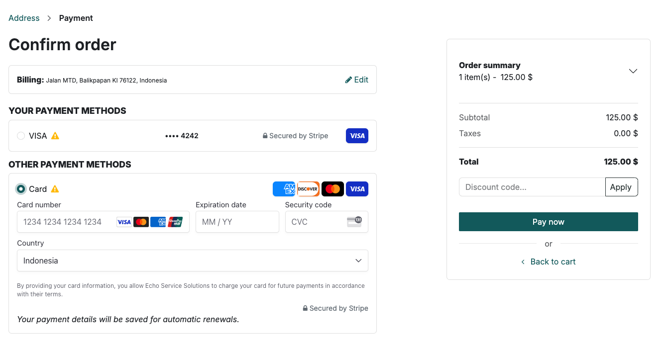 You can add your payment method using your credit or debit card information. All transactions are securely processed through Stripe, our trusted third-party payment provider, to ensure your data stays safe.