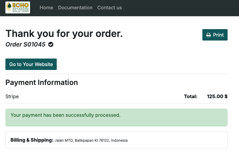 It may take a little while to validate your payment. Once it’s complete, you’ll see a confirmation that your payment was successful. You’ll also see a button that will take you to your new website.