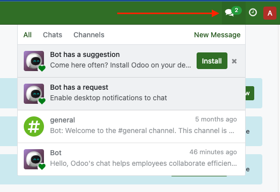 For quicker access, you can also open the chat from the top-right corner of the screen. Click the conversation bubble icon to view your latest messages.