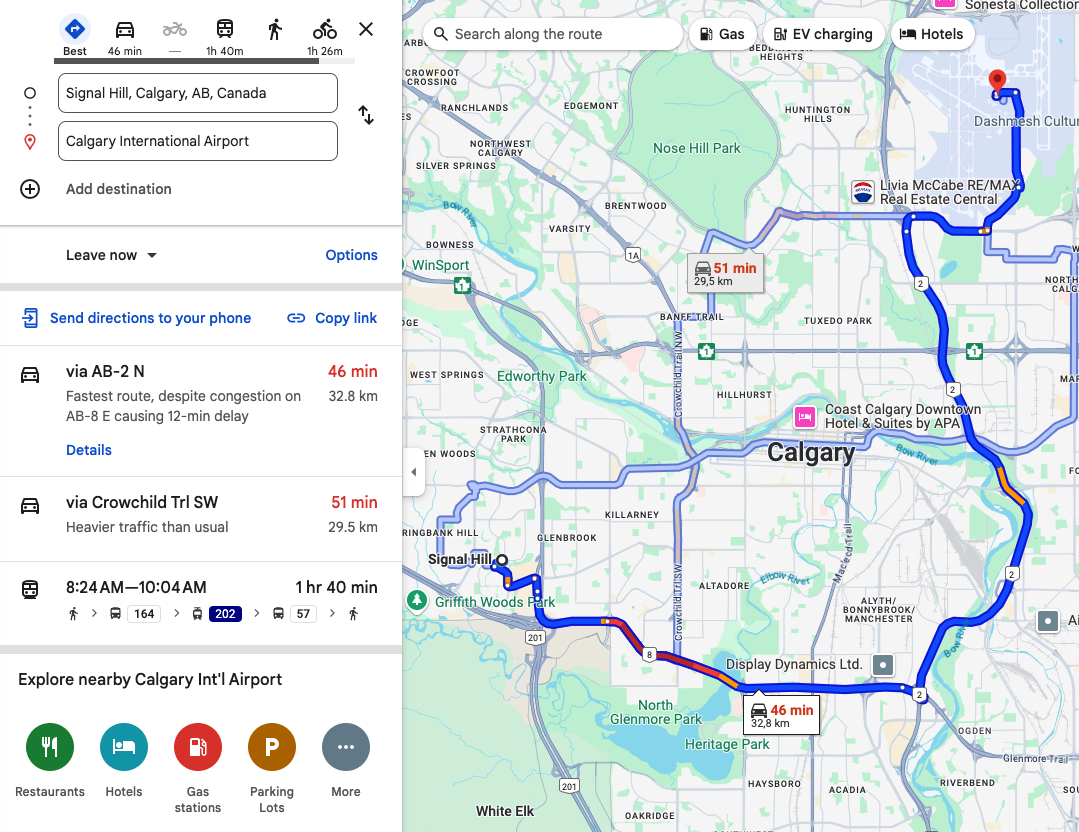 Click Navigate Using Google Maps to see the route from your current location to the destination. A new tab will open with the directions if you are operating from PC.